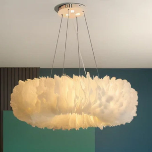 Velastrae Luxury White Hanging Lamp in Circle Shape with Feathers