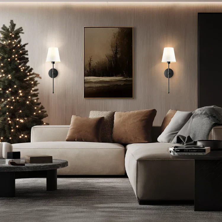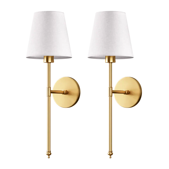 Free up your decor choice with our luxury wall lamps. The classic black, gold or silver finish combined with an elegant white fabric shade fits effortlessly into any interior style.