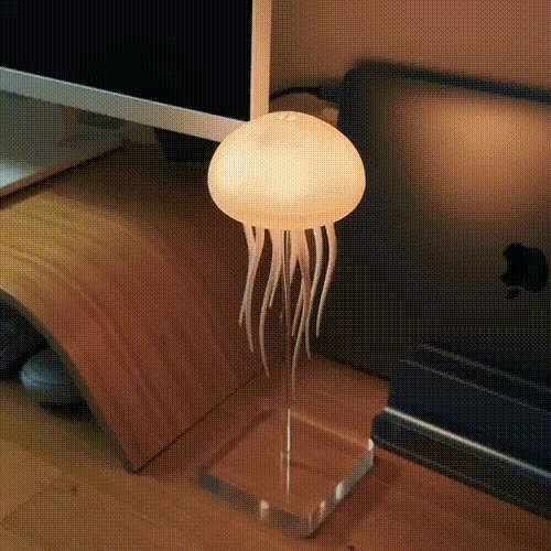 This lamp rotates gently, making its flowing legs resemble a real moving jellyfish. It has a soft, soothing light that can change color, creating a calming effect in any room.