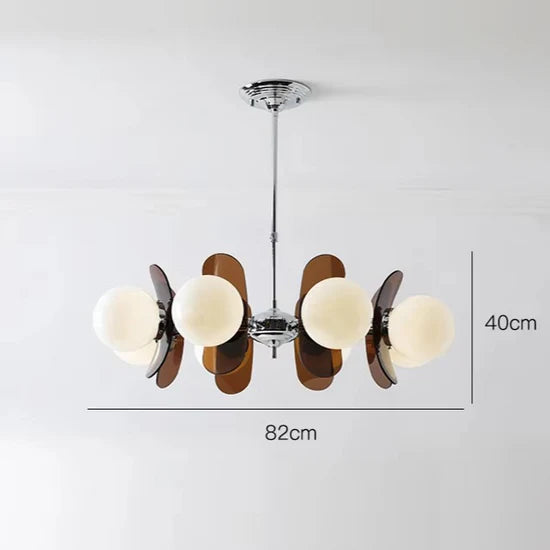 Bring character and style to your interior with this Melora Bauhaus chandelier , a perfect blend of minimalist design and vintage allure . The combination of smooth glass and sturdy metal creates an elegant look that suits living rooms, dining rooms, or creative spaces. The even light distribution and striking design make this lamp a real eye-catcher for lovers of classic modern interior design .