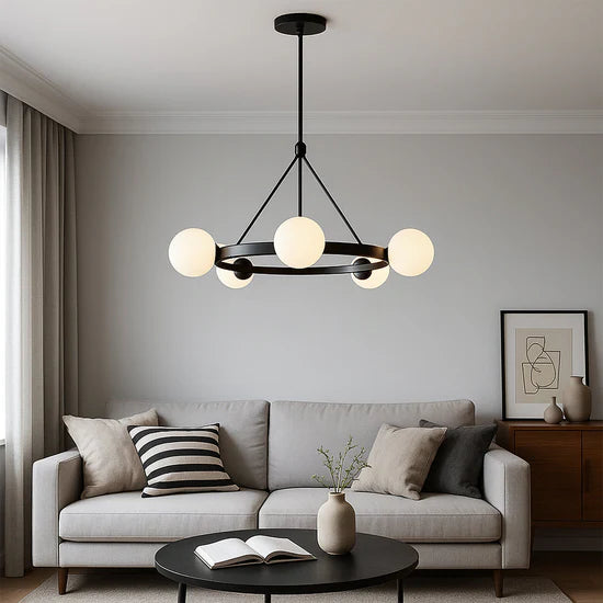 This Nordic 5-light chandelier combines sleek lines with a functional design, perfect for modern interiors. The five light sources provide even, warm illumination above dining tables, in living rooms, or spacious hallways. A stylish choice for those who appreciate minimalist elegance with practical lighting comfort.