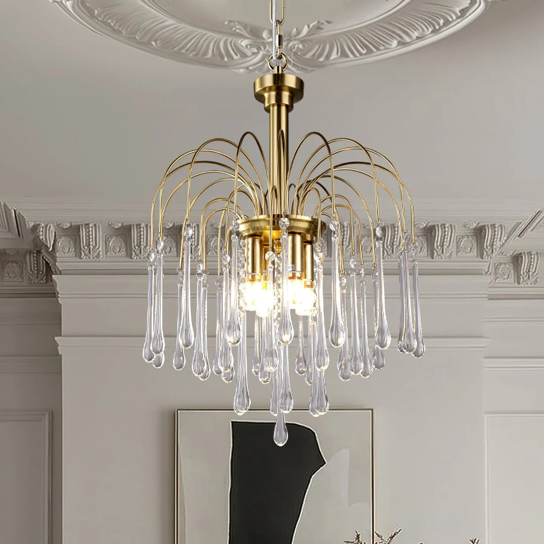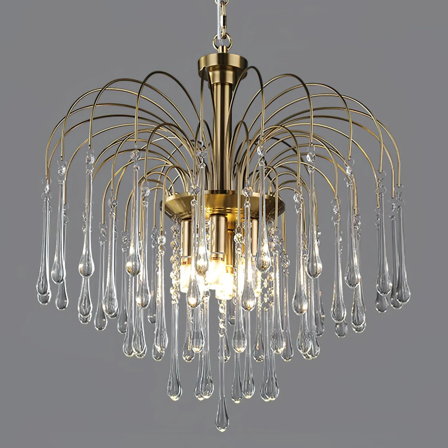 A waterfall of light and luxury – crystal drops in a brass frame