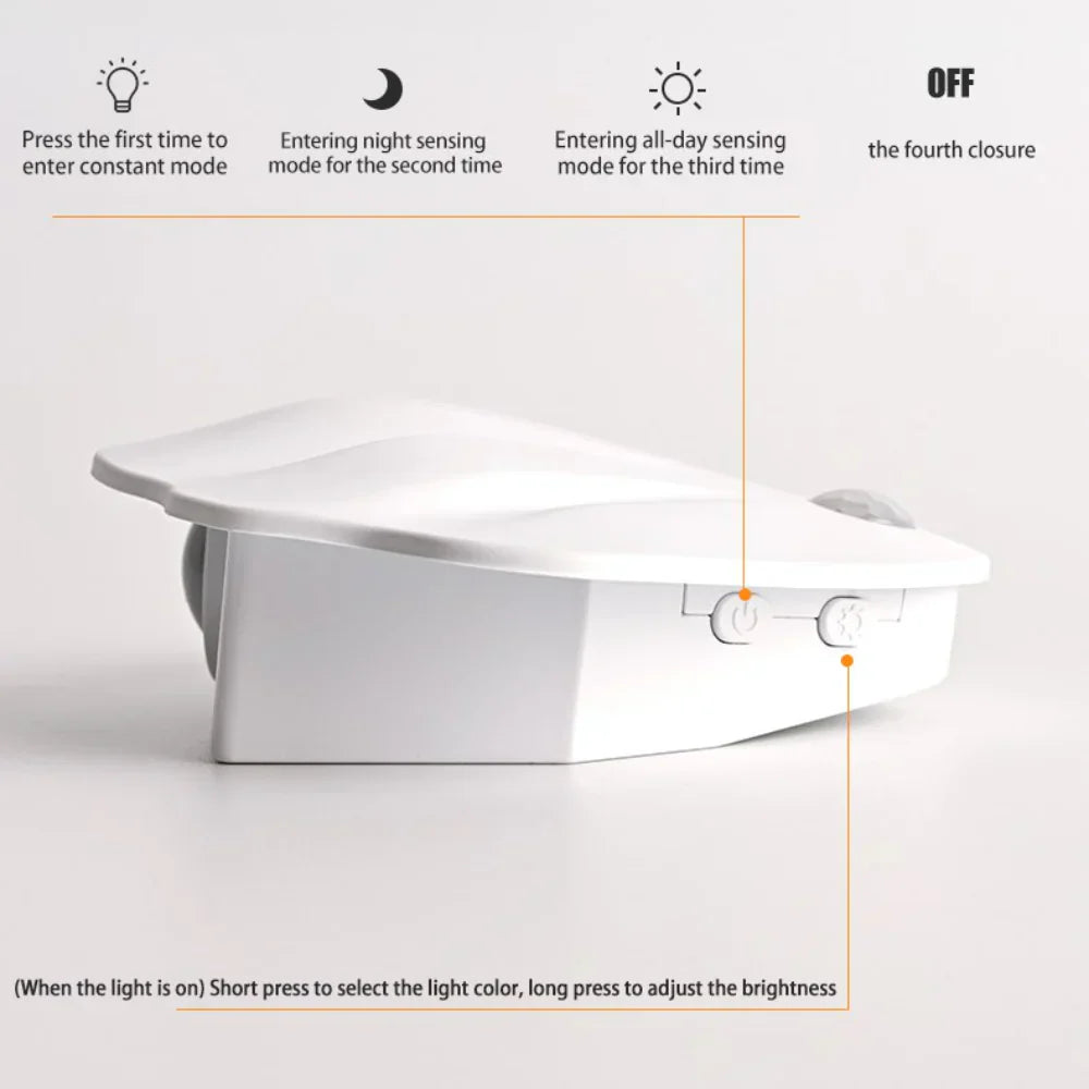 Light Modes: Constant on, Night Sensor, All Day Sensor, Off
