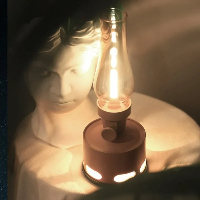 Designed with a captivating blow-to-turn-off feature, this lantern introduces an enchanting way to extinguish the light with just a gentle puff, adding a touch of whimsy to your lighting experience. Additionally, it is engineered with a smart function that automatically powers down the lantern when it is tilted beyond 60 degrees, which mimics the behavior of a real oil lamp, adding an authentic touch to its modern charm.